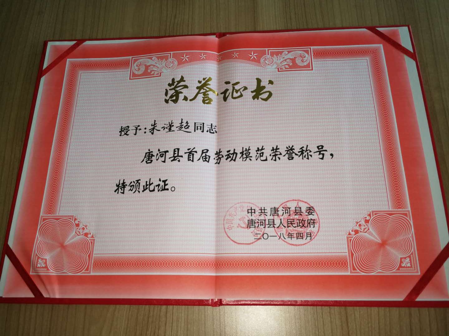 在“五·一”來臨之際,唐河縣委、唐河縣人民政府為首屆勞動模范頒發(fā)了榮譽(yù)證書及獎?wù)?。亞澳南陽公司朱?jǐn)超同志喜獲殊榮。