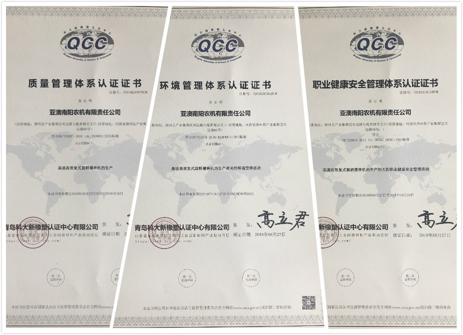 8月20日至24日, 青島科大新橡塑認證公司審核組一行4人對我公司進行質(zhì)量、環(huán)境、職業(yè)健康安全管理體系再認證審核。通過為期4天的審核,審核組對我公司三體系的運行情況作出了評定“優(yōu)良”的審核結(jié)論。審核會議上,審核組一致認為亞澳農(nóng)機有限責任公司管理體系符合ISO9001、GB/T28001等規(guī)定,符合相關(guān)法律、法規(guī)及體系文件要求,質(zhì)量、環(huán)境、職業(yè)健康安全體系運行有效,表示“同意推薦,保持認證”。公司管理者代表郭總表示:一定認真聽取審核組提出的關(guān)于質(zhì)安環(huán)管理體系運行過程的改進建議,對提出的問題抓緊時間落實,并積極與各位專家進行交流,力爭使我公司的管理水平再上一個新臺階。