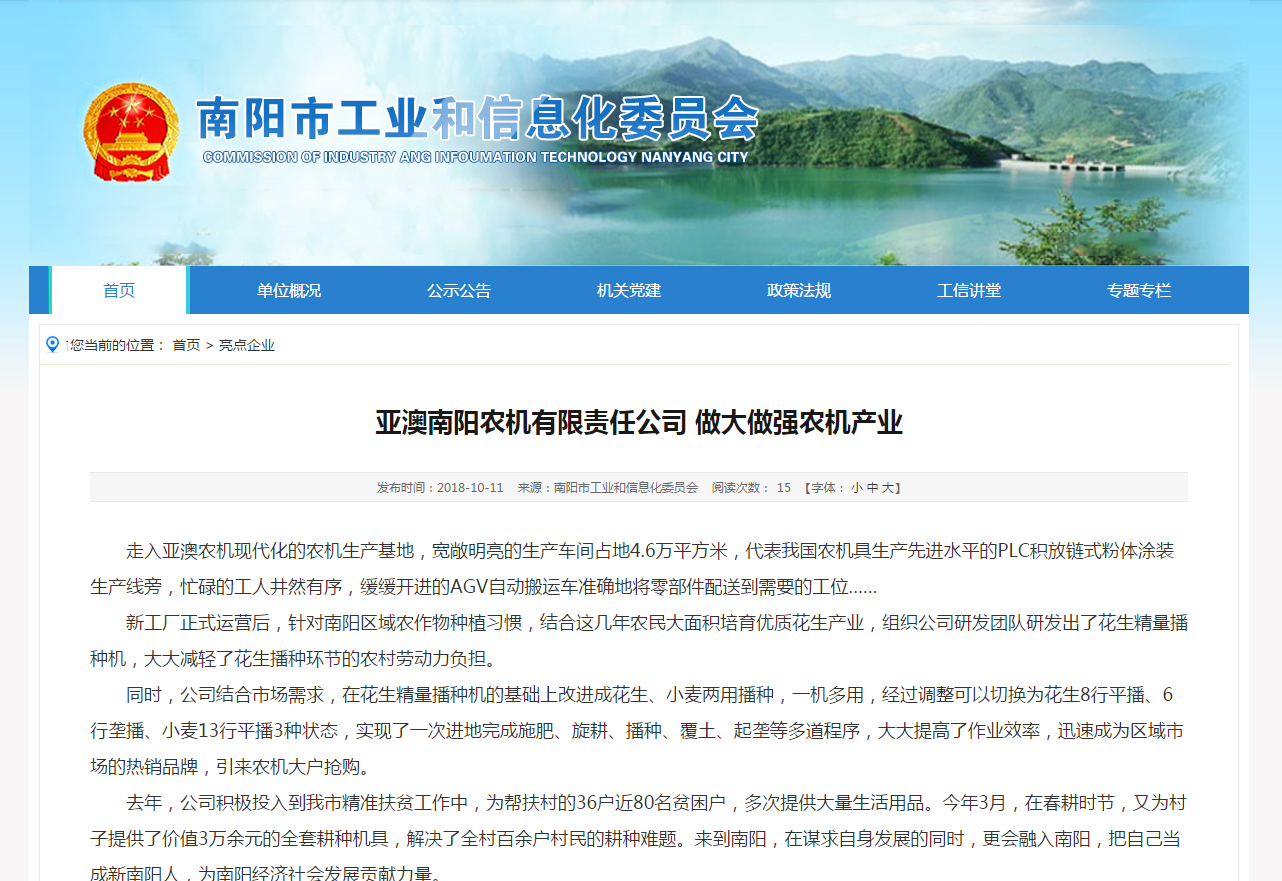 走入亞澳農(nóng)機現(xiàn)代化的農(nóng)機生產(chǎn)基地,寬敞明亮的生產(chǎn)車間占地4.6萬平方米,代表我國農(nóng)機具生產(chǎn)先進(jìn)水平的PLC積放鏈?zhǔn)椒垠w涂裝生產(chǎn)線旁,忙碌的工人井然有序,緩緩開進(jìn)的AGV自動搬運車準(zhǔn)確地將零部件配送到需要的工位……