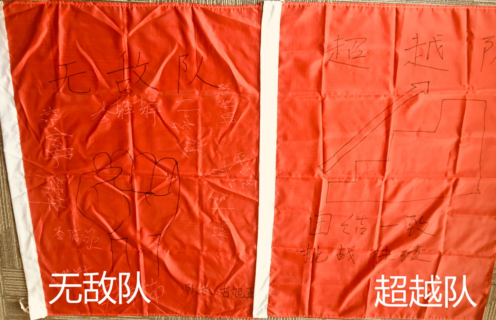 士氣展示,每組在隊長的帶領(lǐng)下,繪制隊旗隊呼,并列隊進(jìn)行展示,在展示的過程中,在每一個隊員的配合下,整齊劃一,士氣滿滿。
