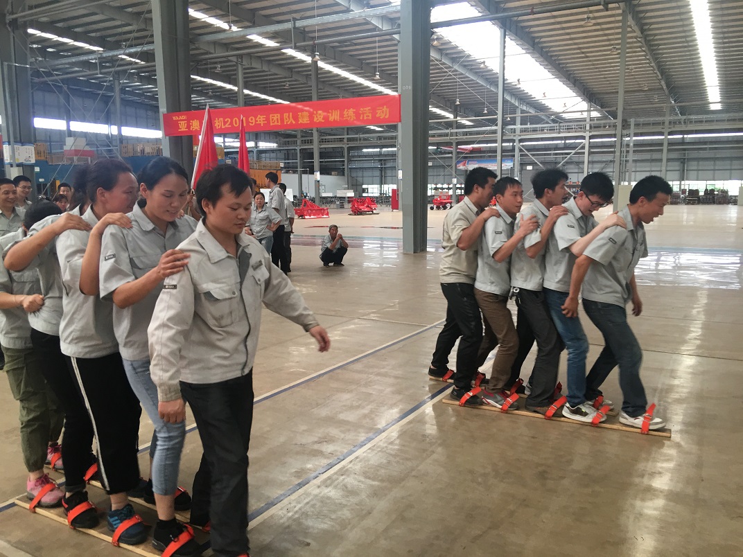 為了提高團(tuán)隊協(xié)作能力,2019年6月6日亞澳農(nóng)機(jī)全體員工在車間進(jìn)行了團(tuán)隊建設(shè)訓(xùn)練活動。