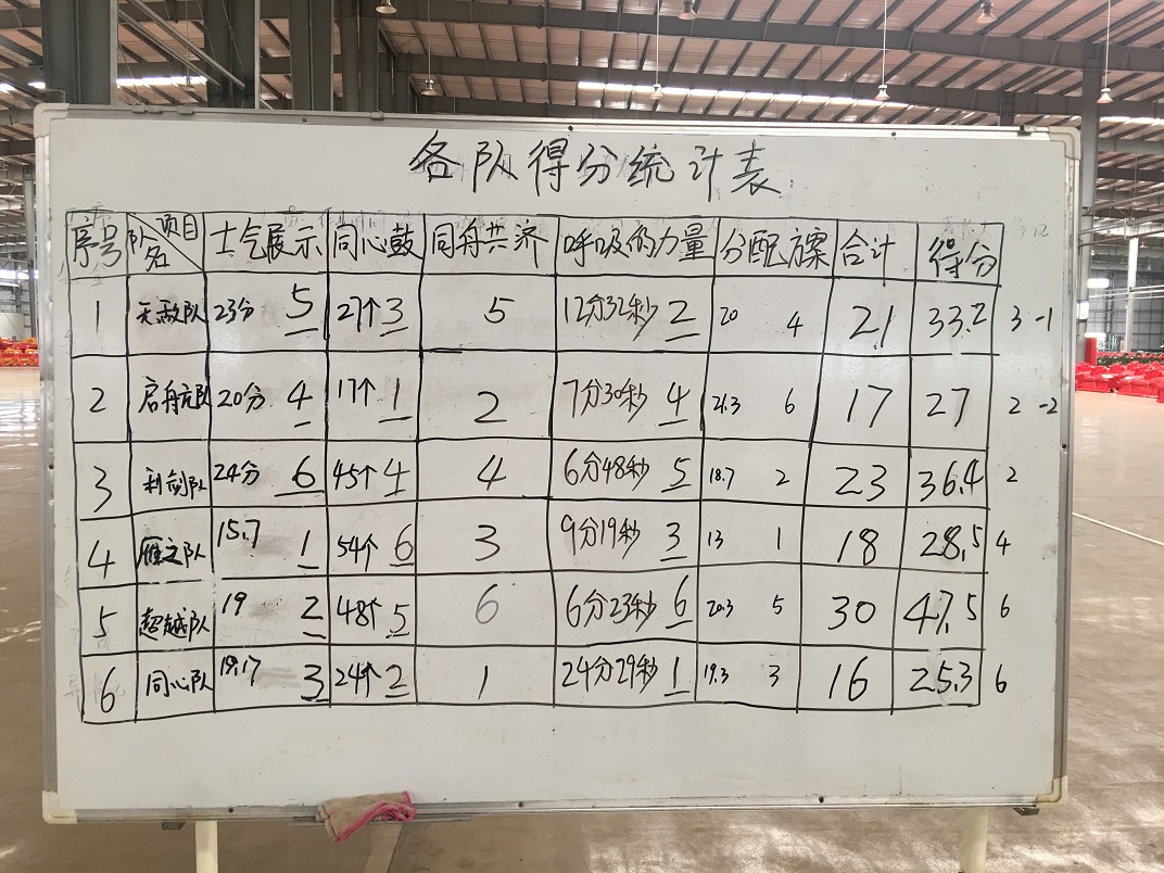 活動開始前,通過短暫的熱身活動,打破了員工之間的隔閡,營造了團(tuán)隊氛圍。接下來,在總教練的指導(dǎo)下,全體員工分為六組在士氣展示、同心鼓、同舟共濟(jì)、呼吸的力量等幾個項目上進(jìn)行了比拼。