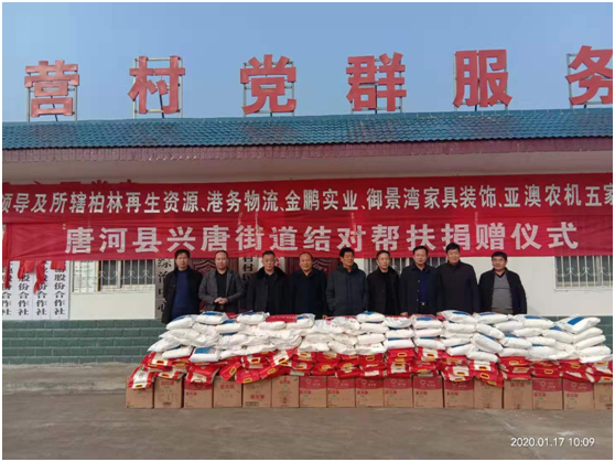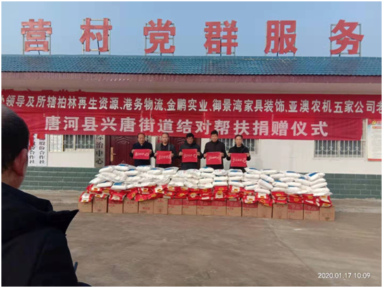 捐贈儀式上產(chǎn)業(yè)集聚區(qū)黨委書記劉清文、主任李國營代表興唐街道黨委、政府向五家企業(yè)的義舉表示感謝。他指出,以亞澳農(nóng)機(jī)為首的這五家公司,在完成自身企業(yè)負(fù)責(zé)包片貧困村脫貧的基礎(chǔ)上,還能再拿出現(xiàn)金3000元捐資扶貧,將自己的社會責(zé)任意識,由助力脫貧攻堅(jiān),走向現(xiàn)在回饋社會。代表著我縣企業(yè)經(jīng)營由起步走向成熟。他希望廣大困難群眾正確面對暫時(shí)的困難,樹立戰(zhàn)勝貧困、走出困境的信心和勇氣,發(fā)揚(yáng)自力更生、艱苦奮斗的精神,不等不靠,在黨委、政府和社會各界的支持和幫助下,以自身的努力和實(shí)干來化解生產(chǎn)、生活中的各種困難,為構(gòu)建美麗和諧的新唐河作出自己的貢獻(xiàn)。