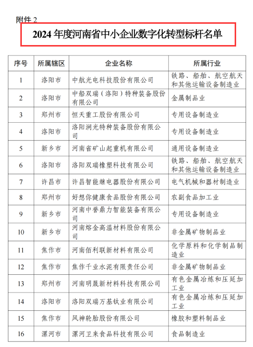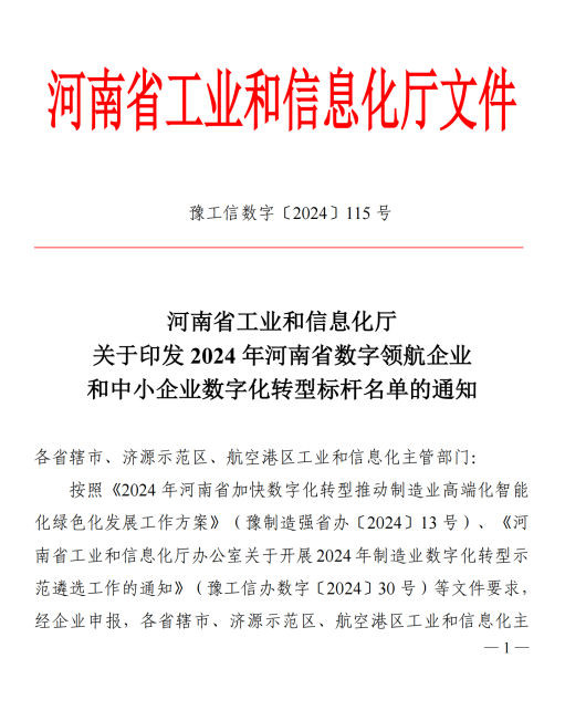 河南省省級(jí)中小企業(yè)數(shù)字化轉(zhuǎn)型標(biāo)桿企業(yè)