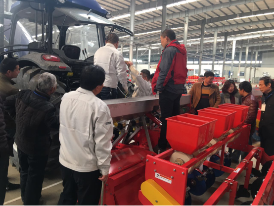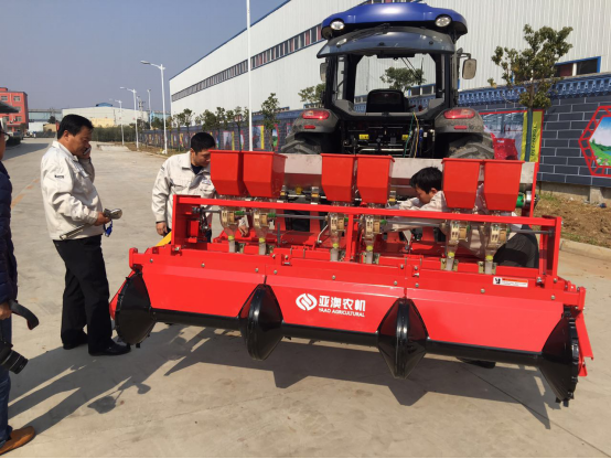 現(xiàn)場會上,亞澳專業(yè)技術(shù)人員及銷售經(jīng)理對我廠新研發(fā)的花生精量播種機做了詳細(xì)介紹,各鄉(xiāng)鎮(zhèn)社員及各站站長針對花生種植技術(shù)、施肥方法和機械化播種等方面做了詳細(xì)講解。隨后,60名用戶和農(nóng)技人員一同觀摩了機械化播種演示。