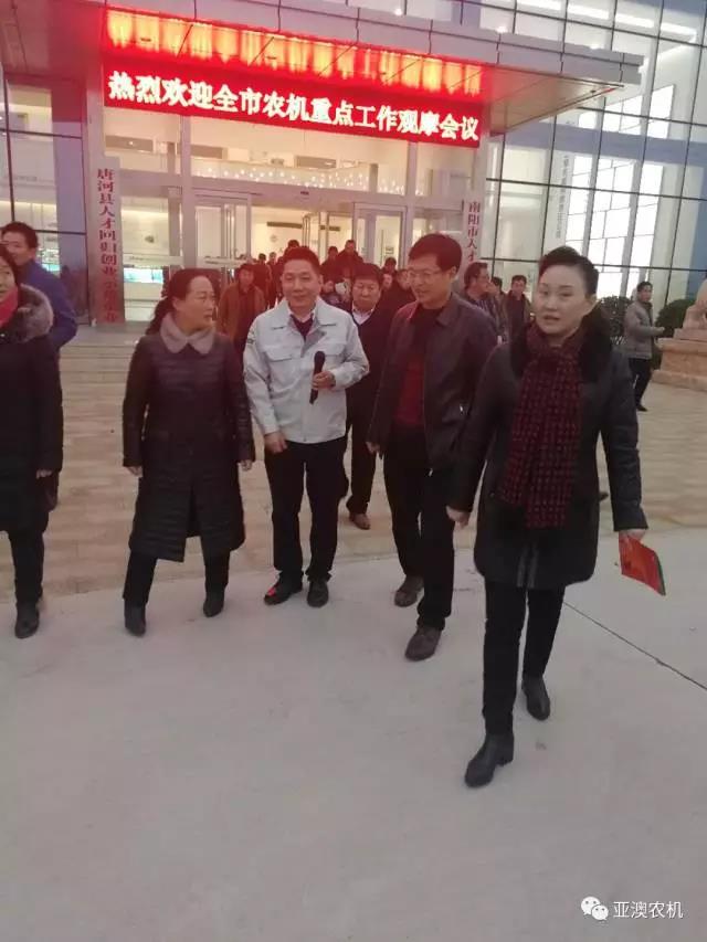 2017年12月13日,南陽市農(nóng)機局劉勤局長在縣政府馬俊宏副縣長、縣農(nóng)機局張凌局長陪同下帶領(lǐng)參加全市農(nóng)機重點工作的市、各縣農(nóng)機系統(tǒng)領(lǐng)導(dǎo)及各縣屬專業(yè)農(nóng)機合作社人員,來到亞澳農(nóng)機觀摩指導(dǎo)。