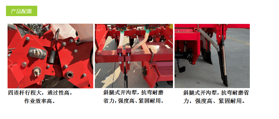 2、大豆采用勺輪式排種器,避免種皮損傷,有效保證發(fā)芽率;玉米采用指夾式精量排種器,穴距精確,幼苗分布均勻,競爭小,個體優(yōu)勢能夠充分發(fā)揮,作物生長旺盛,產(chǎn)量高。